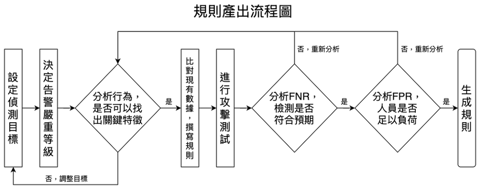 在一般藍隊中,這可能會是比較缺乏的一項能力,如何完整測試規則有效性會是個問題。透過BAS或弱掃工具、使用公開的PoC exploit代碼進行攻擊,或是復現曾發生過的資安事件,又或甚至進行滲透測試、紅隊演練都是可能的選項之一。端看管理負責人如何在完整測試與成本上取得良好平衡。 - 3. FPR、FNR的平衡
