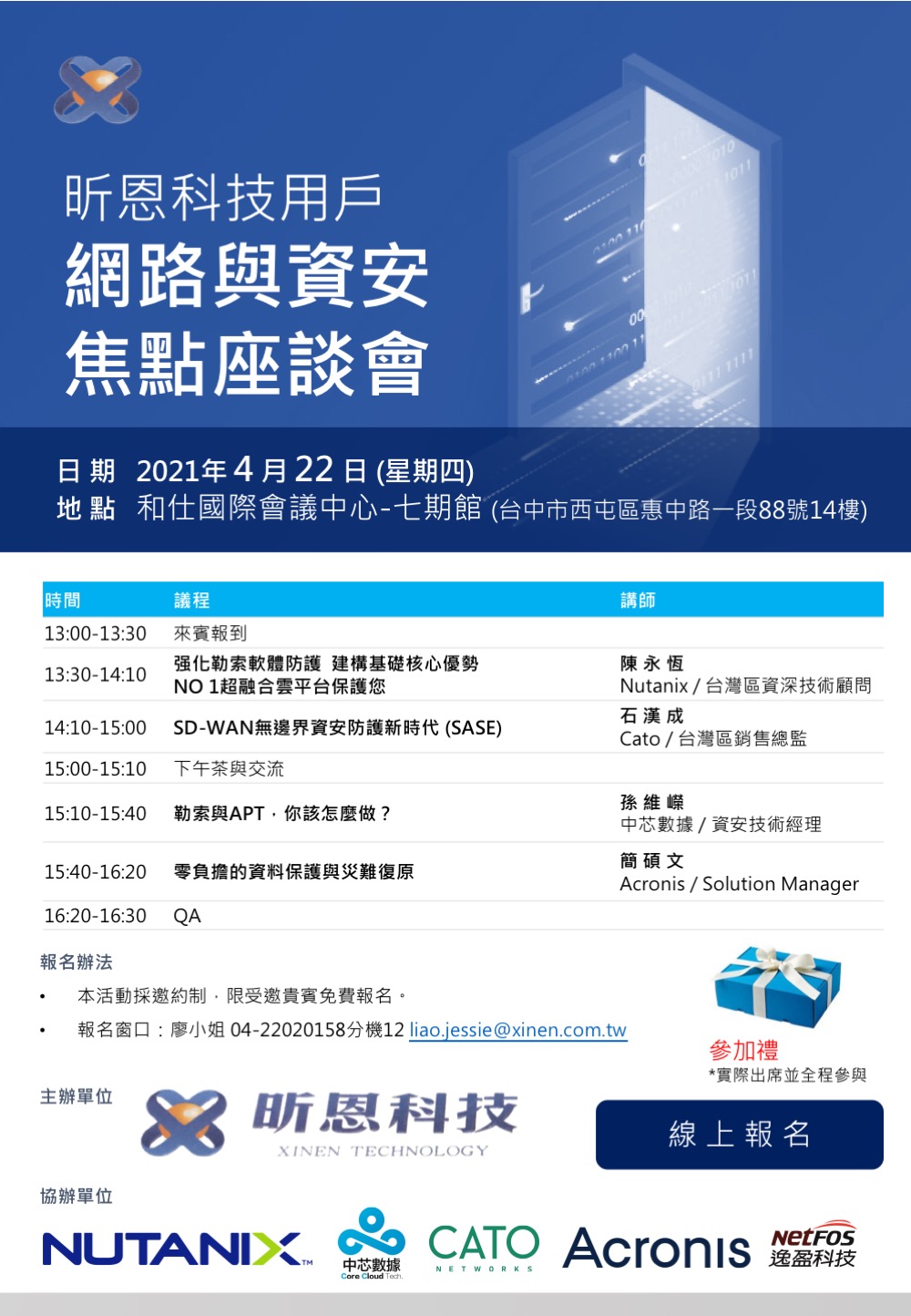 - 活動名稱 昕恩科技用戶網路與資安焦點座談會
