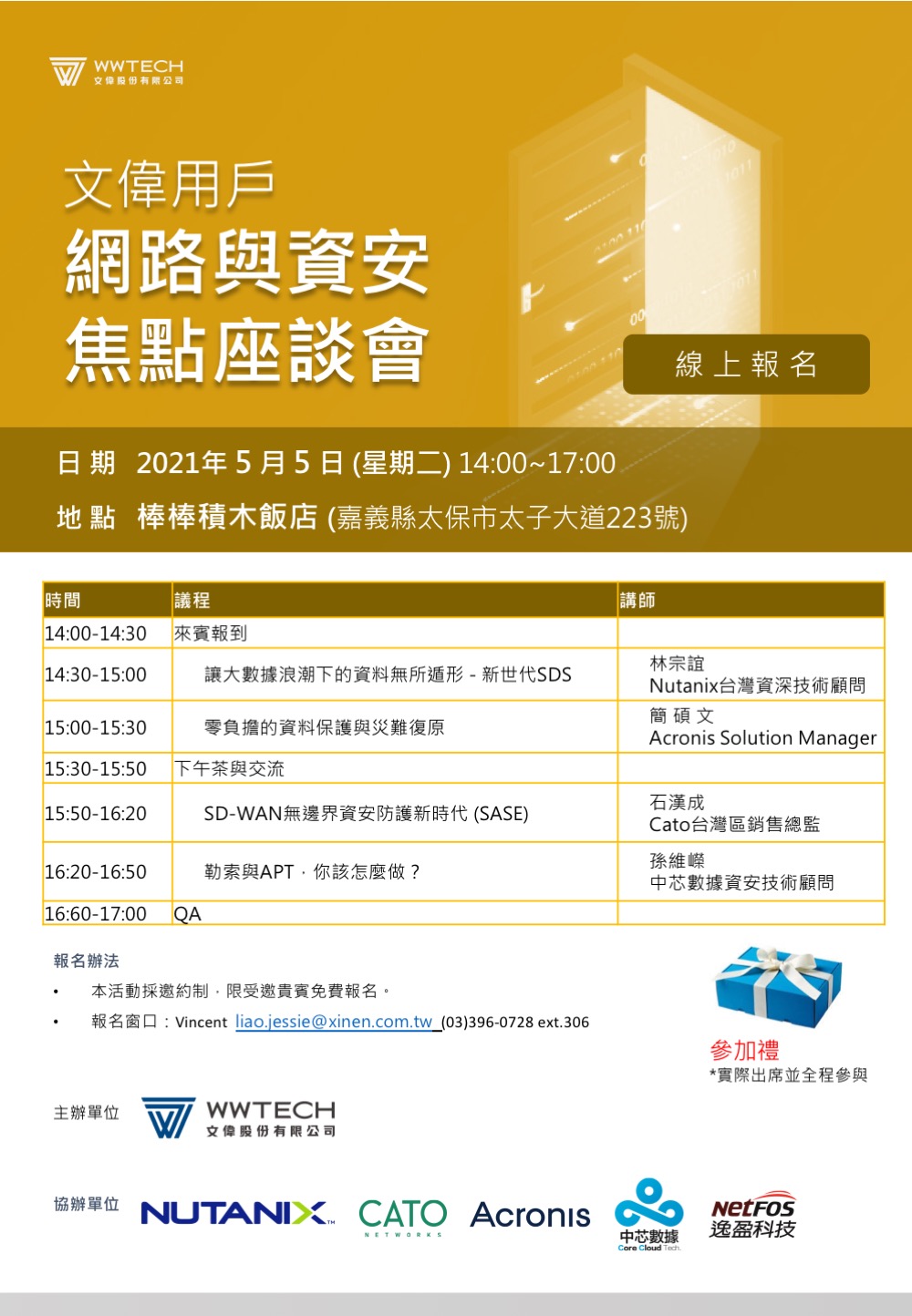 - 活動名稱 文偉用戶網路與資安焦點座談會