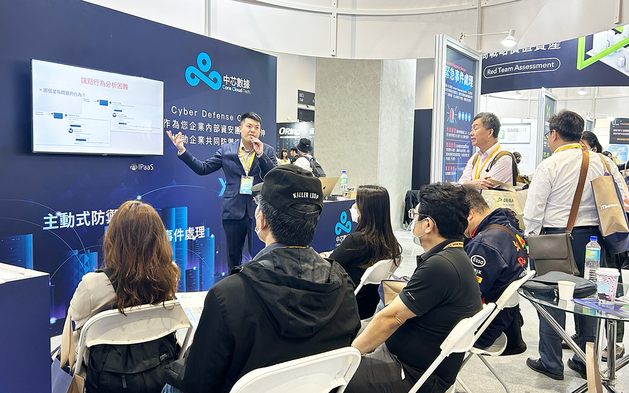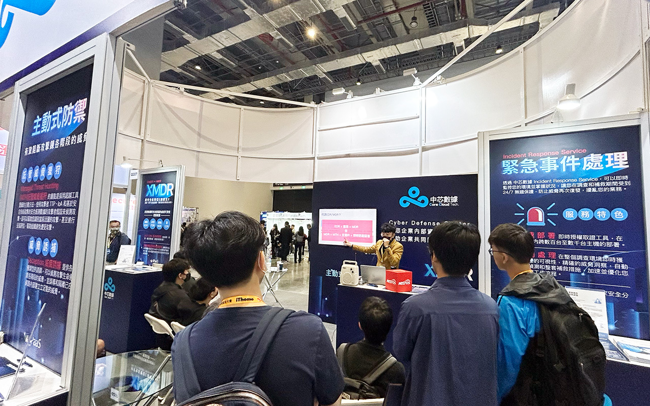 我們也在這次活動針對三大服務內容,舉辦現場資安講堂,特別安排資安顧問談到『從MDR到主動威脅狩獵』、『從E擴展至X的全面安全託管』、『靈活的緊急事件處理』三大議題講座,獲得熱烈回應。