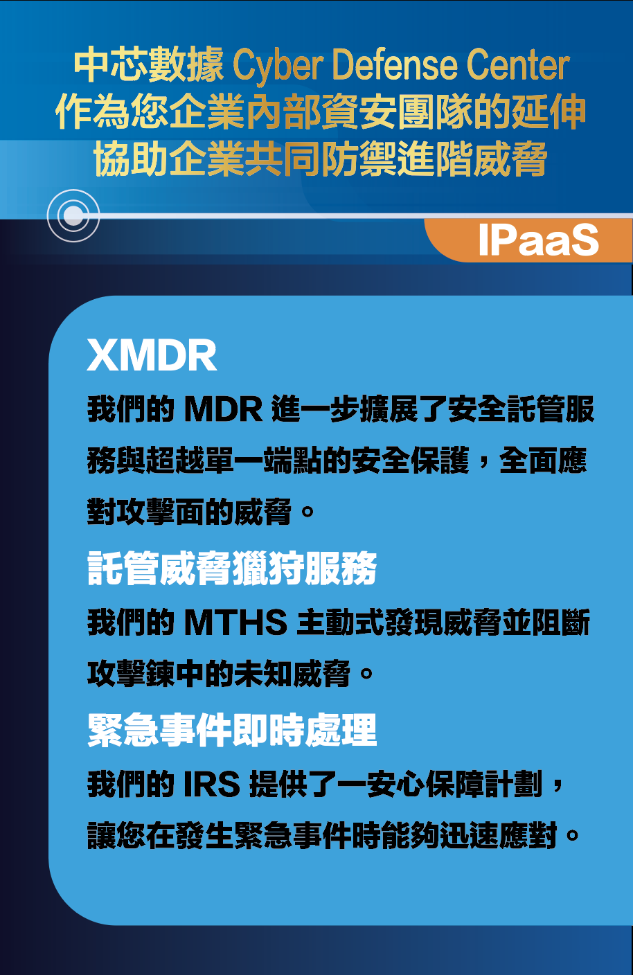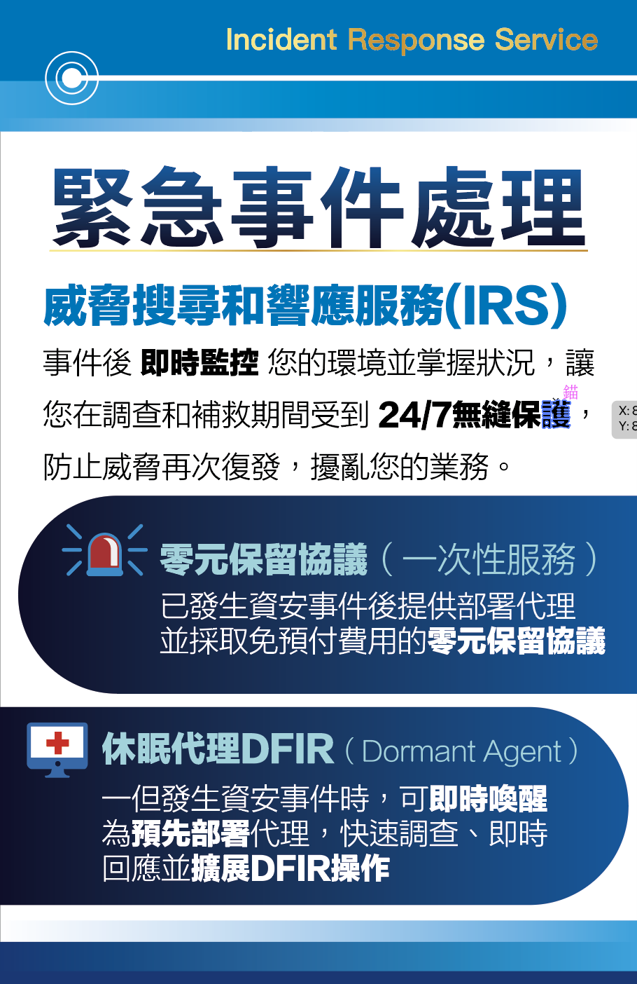 - IRS 緊急事件處理 – 企業專屬安心保障計畫,快速應變資安事件。點擊下載完整資料