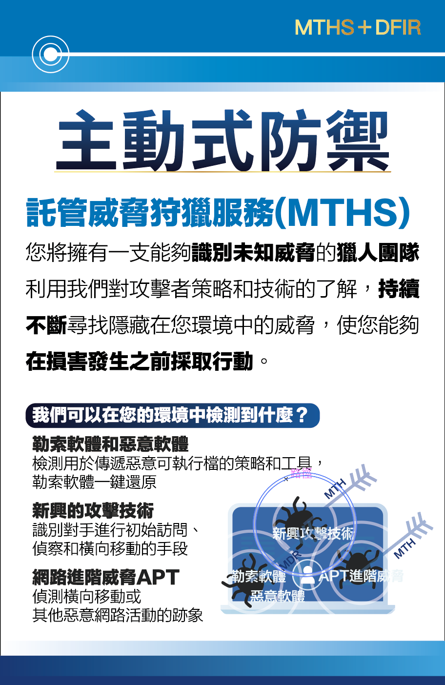 - MTHS 主動式防禦 – 先發制人,阻斷未知威脅。點擊下載完整資料