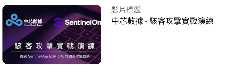 - SentinelOne 企業級資安解決方案,提供多層次安全方案 – Core / Control / Complete 三種版本,滿足不同規模企業需求,及可透過中芯數據MDR 安全託管服務提供24/7 威脅監測與應變。點擊下載完整資料